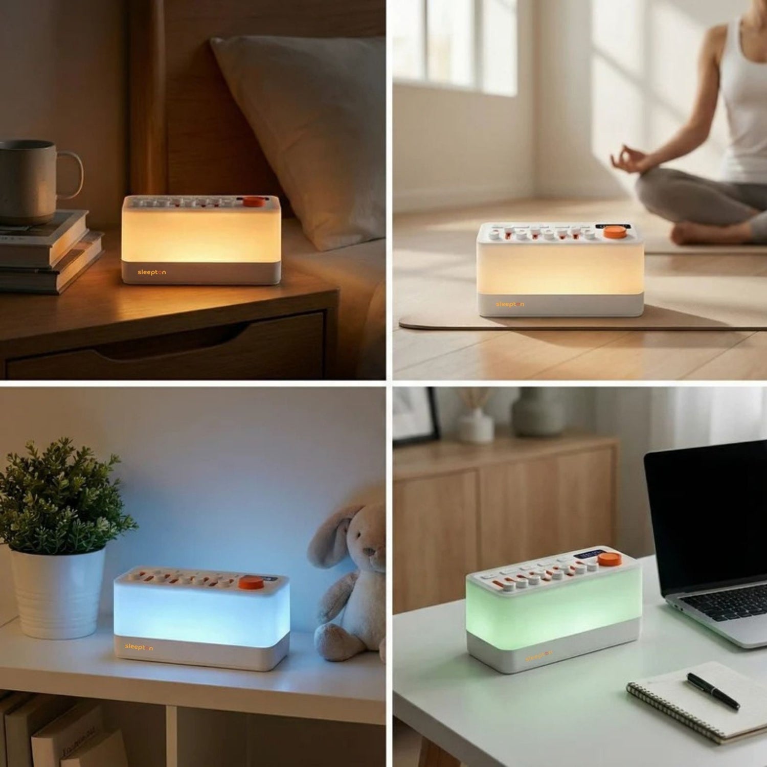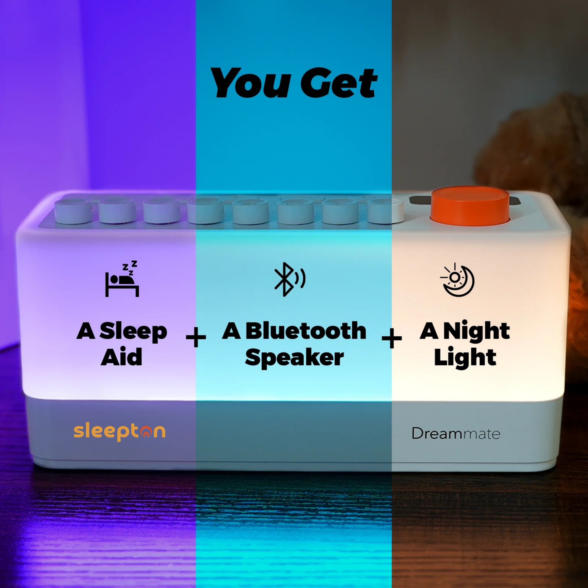 Sleep assistance sounds + Bluetooth speaker + Adjustable night light — all in one.