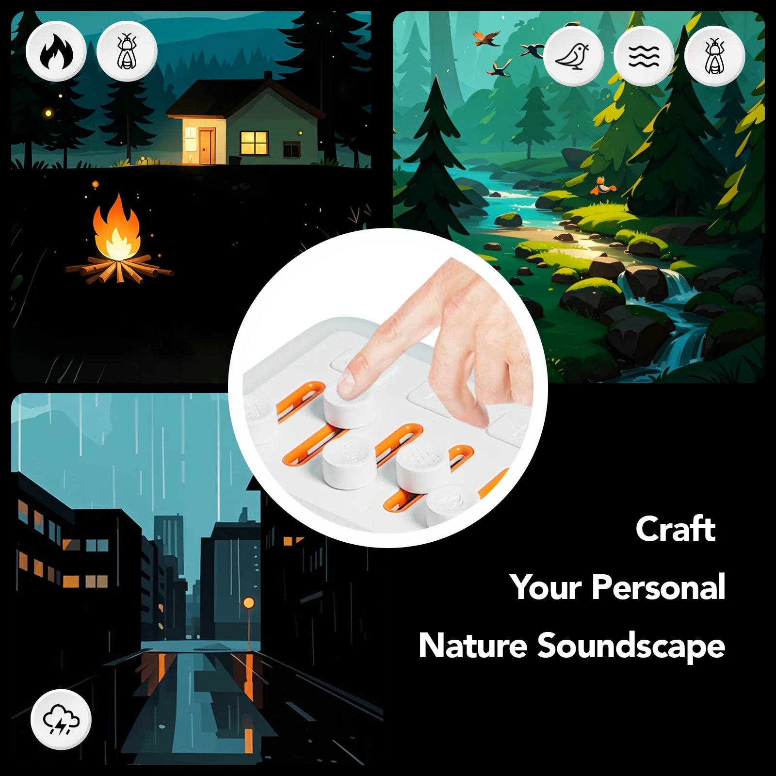 You can turn each dial up or down to control the volume of that one sound, allowing you to create your own perfect mix. Whether your child loves the soft rhythm of falling rain or the cheerful melody of birdsong, you can blend the sounds to match their mood and make bedtime feel magical.