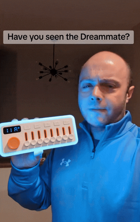Sleepton features 8 individual dials, each one connected to a specific calming sound — like Raincloud Lullaby or Chirping Forest Friends.